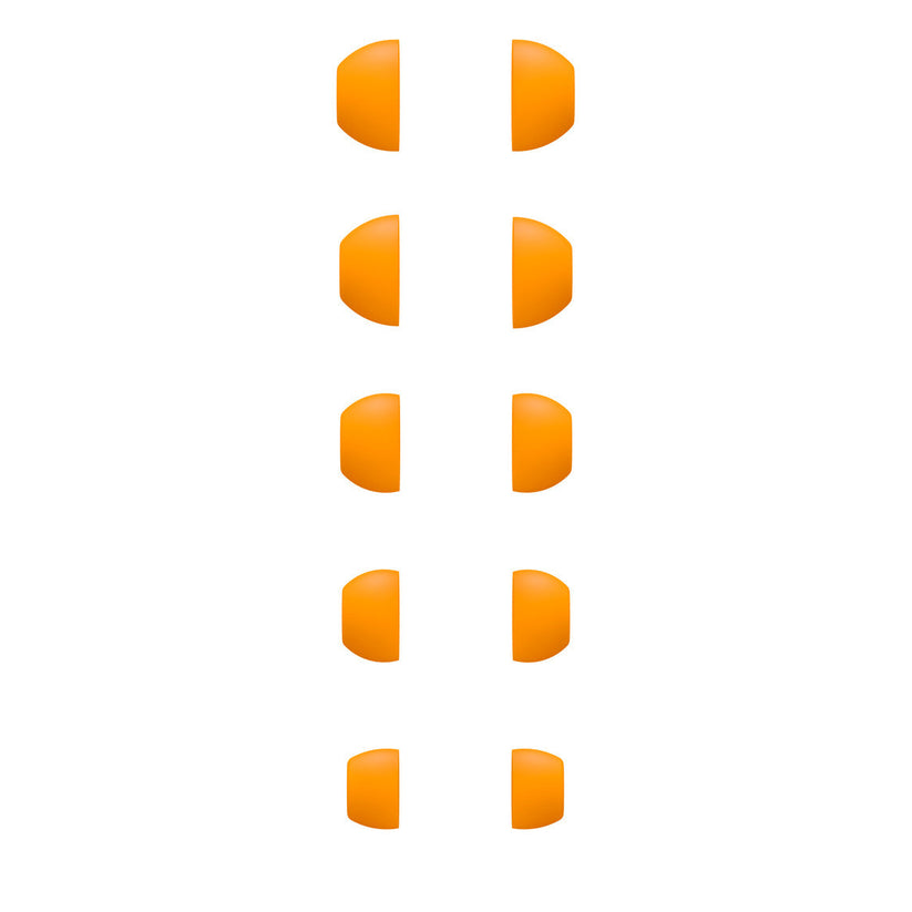Øretupper i fem størrelser.