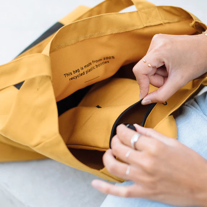 Resirkulert, gjenbrukbar hverdagsbæring. Denne planetvennlige totebaggen er designet for å være fleksibel og sammenleggbar for å ha med seg til å handle dagligvarer og andre ærend, samtidig som den er solid nok til å romme det du trenger på farten og mer. Den har en glidelåslomme for enkel organisering. Laget bedre for jorden med 100 % resirkulert polyester laget av plastflasker