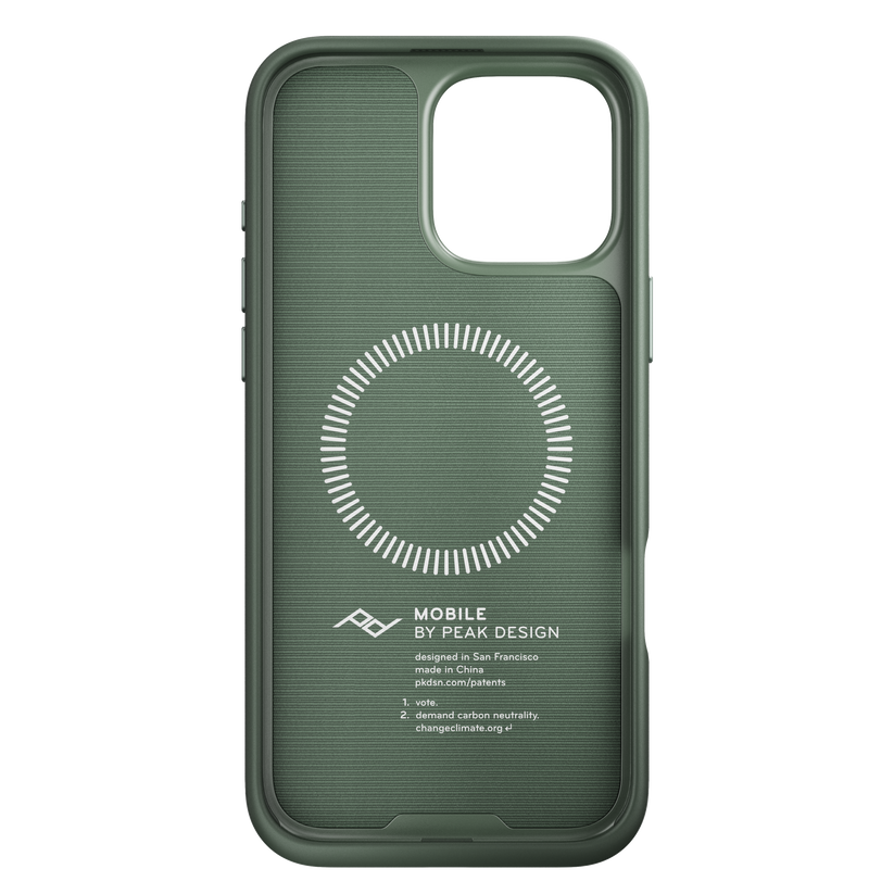 Et Magsafe-kompatibelt iPhone deksel med den perfekte balansen mellom slankhet, smart estetikk og beskyttelse, pluss at den kobles briljant til hele Peak Design Mobile Ecosystem. Dekselet har en slank 2,4 mm tykk profil og beskyttende støtfanger av gummi, alt pakket inn i et vakkert nylon lerretsskall. Men det som virkelig skiller dette dekselet fra andre er det magnetiske/mekaniske låsen som er innebygd rett inn i den. Peak Design kaller denne monteringsteknologien SlimLink™, og den er så rask og sikker at det grenser til magi.